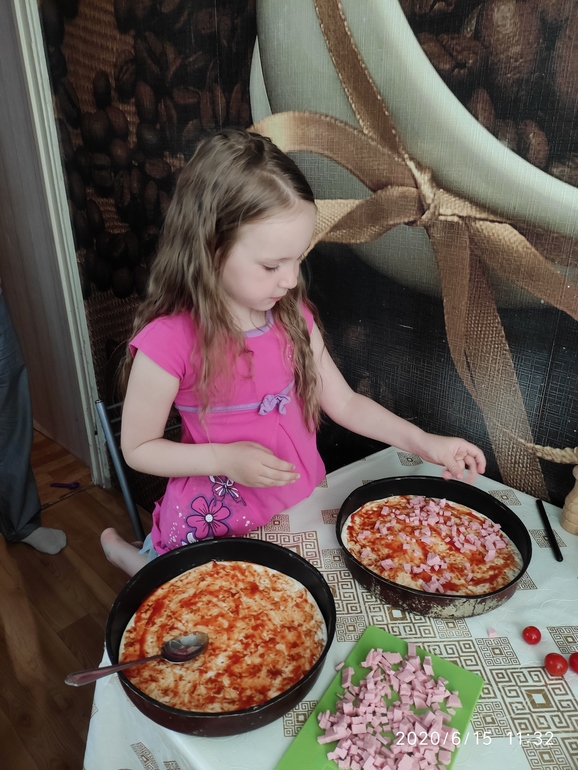 Ближе к 11 заехали бабушка с дедушкой. Поздравили, поиграли. Я уложила Ваню спать и мы пошли готовить пиццу на обед.