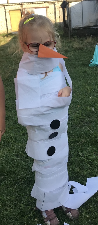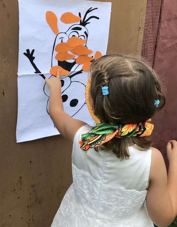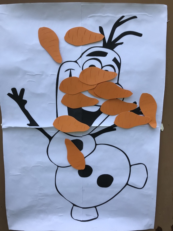 Был конкур «Верни нос Олафу» . С завязанными глазами прикрепляли Олафу его потерянный нос.