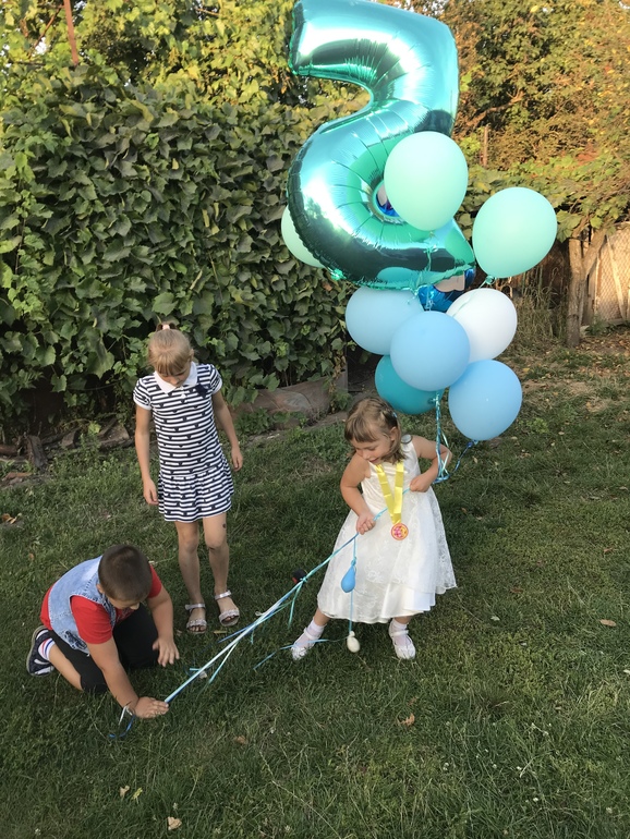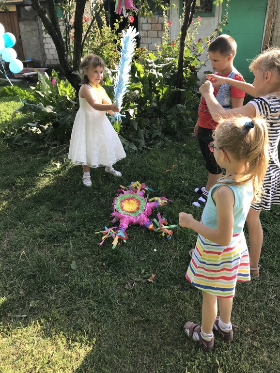 Гостей было 5-ро: 7л, 8л, 3г4м, и двое 5л+. Малышка ни в чем не участвовала. (Двое не приехали деток, больше никого приглашать не стали, хотя дочке предлагали, но с ее стороны энтузиазма не было).