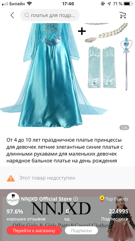 у нас два платья))) короны всякие. с белым верхом брала в размер, атласное на два размера больше. дочь любит перевоплощаться. за два платья отдала 1000 и покупка оказалась небесполезной. сейчас едет набор гаррипотера)