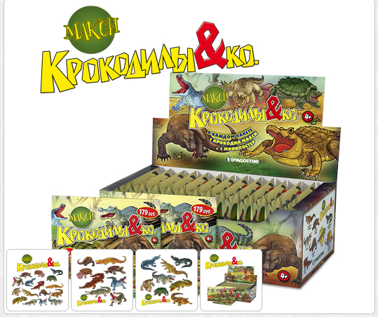 Как вариант Крокодилы Диагостини и яйца с крокольдильчиками. И ту, и другую коллекцию сын сейчас собирает.