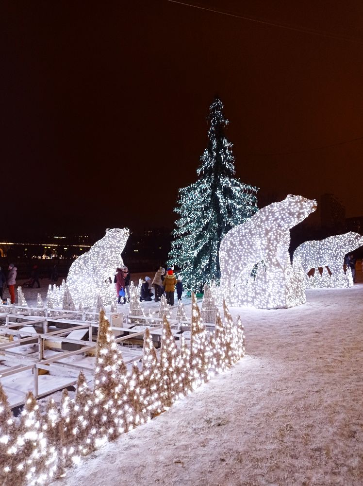 Новогодняя инсталляция "Полярные медведи"в парке "Акведук"(Ростокино).Только что оттуда.Недалеко есть детская площадка и большие горки,где все катаются на ледянках и ватрушках.