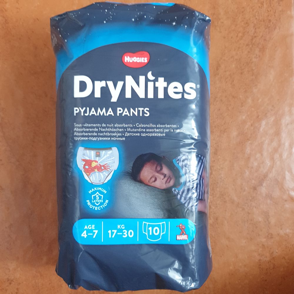 Всем привет! Хочу рассказать, что нам очень понравились ночные трусики Huggies DryNites для детей от 4 до 7 лет. Сыну 4 года, он как их увидел, сразу сказал, что хочет надеть, т.к. они похожи на его обычные трусы и у них прикольный рисунок. Трусики очень мягкие, поясок тянется и не давит, при том что сын у меня крепкого телосложения. И самое главное они не протекают, постель всегда сухая и чистая!