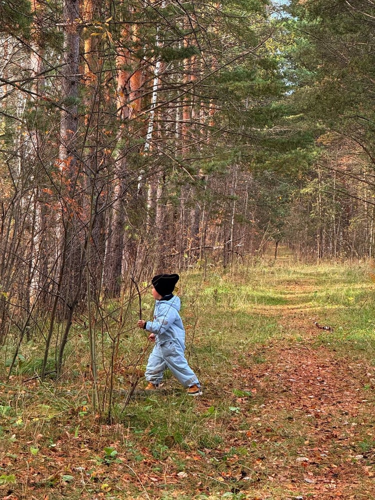 Мальчик много гуляет. Мы не ограничены по времени, поэтому гулять можем сколько захотим. Площадки мы оба не сильно любим, обычная прогулка это лес.