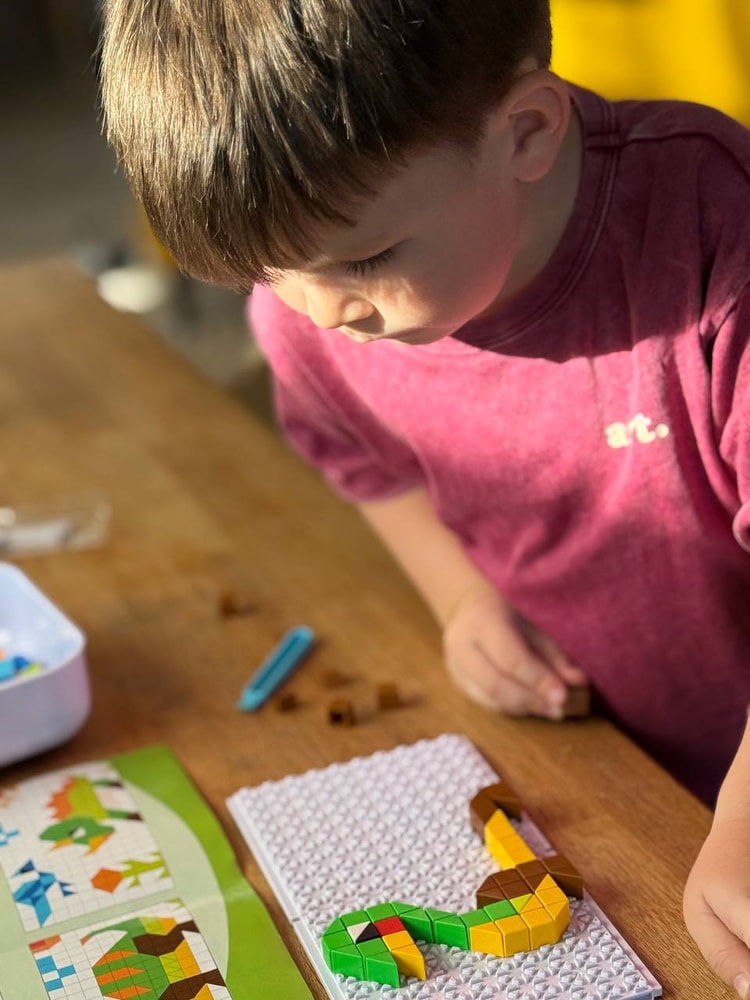 Веня сегодня собирал мозаику,а я смотрела. Просто сидела рядом и наблюдала и это то,что действительно важно. Мы с ним беседовали, а я смотрела как на него падает солнышко и его уши нежно светятся розовым и ощущала всю правильность бытия в этот момент. И это совершенно иной уровень взаимодействия с ребенком, когда перестаешь говорить глаголами вроде "убери, ешь, одевайся, умывайся".