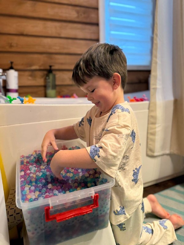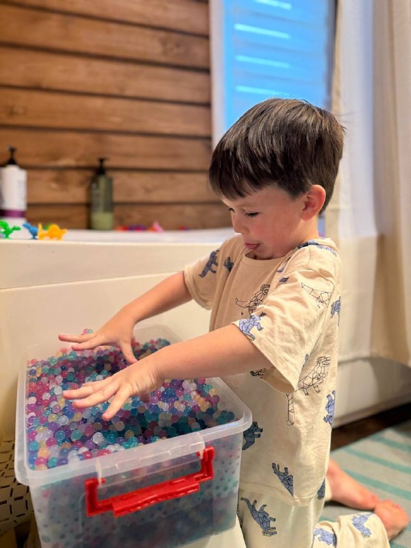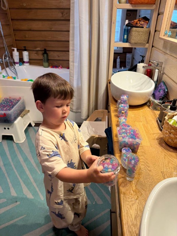 Аквашарики, пролежвашие в машине полгода,наверное , пошли в дело. Много игр было по пряткам в них игрушек, потом поиску. А тут вот "все вёдра,все тазы в молоке"(с)