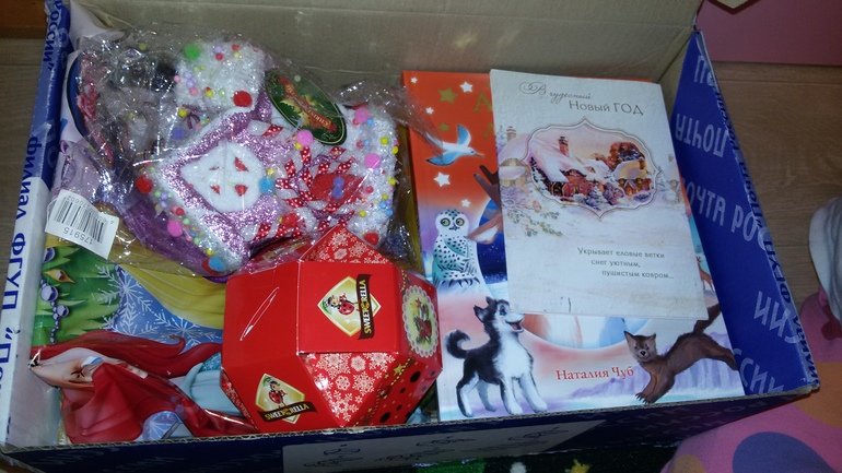 У нас сегодня прям замечательный день! Во-первых, я увидела пост про свою посылку, за что спасибо Варваре большое!!! А во-вторых мы получили свою посылочку от нашей Снегурочки Александры!!!!