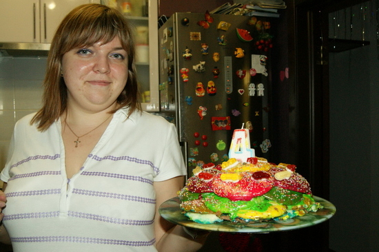 тортик колдовали на пару с димкой... получился, ну очень вкусный!!! не смотря на ядерный цвет, дети от буйства красок были в восторге)))
