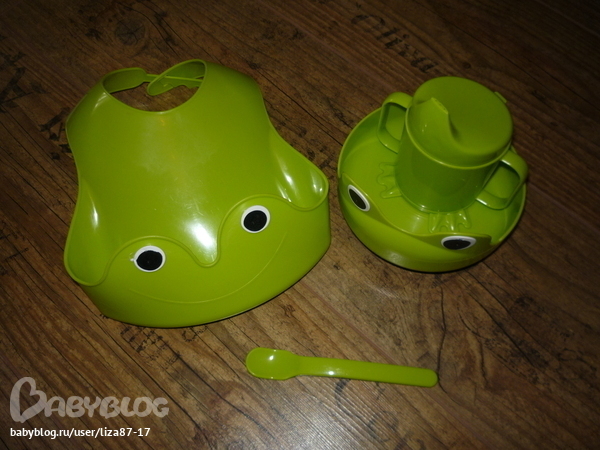 Лягушачий комплеткик для еды как раз очень-очень кстати! Прикорм в полном разгаре!!! И теперь кушать кашки и пюрешки нам будет ещё веселее :)))