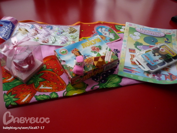 А в посылочке: Альбом, раскраска и краски и пластилин "маша и медведь" Дочь сидит и рисует и лепит одновременно)))