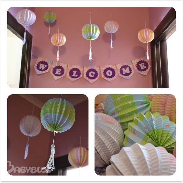 "Welcome" у нас висела в коридоре, напротив входа, вместе с чудесными мини китайскими фонариками. Это единственное из декораций, что я купила в магазине, они очень милые:) (продаются в "Веселой затее")