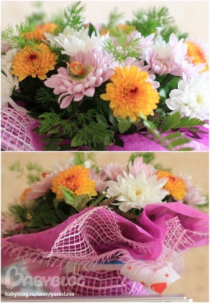А мой муж подарил мне цветочки и денежки на колечко, которые спрятал между цветочками!!!