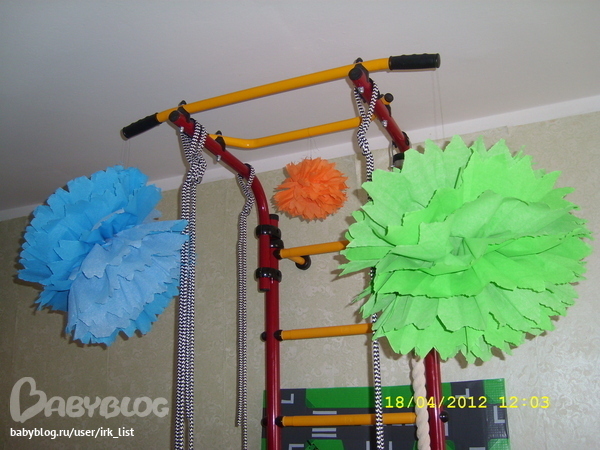 Зеленый помпон получился отличный! Бумага 50 см на 250 см. Я разделила не на 5 частей а на 4 и по законам геометрии получился почти шар! из 8 слоев!