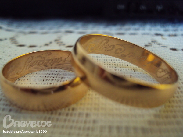 Ну вот девочки, я и сделала гравировку. Оцените фото. качество конечно не очень. На моём написано "Люблю! Твой Муж. 25.07.09" А на его "Люблю! Твоя Жена. 25.07.09"