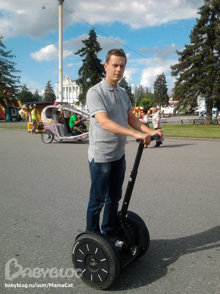 а потом повезли на ВДНХ катать на Сигвее))) долго я искала, как покататься на этой штуковине, чтобы без подарочных сертификатов обойтись и нашла. Причем по тел ребята сначала сказали что катают они группами, но потом оказалось, что и по 1чел тоже катают. Находятся они около фонтана Дружба, если его правее обойти и в 10м от фонтана можно их отыскать)) Стоит это дело 500р -15мин. Я оплачивала 30мин - этого вполне достаточно)) Ты катаешься, а рядом ездит либо пацан, либо девушка - следит (впрочем они предупреждают об этом сразу). Мужу очень понравилось, слился с ентой штукой и как на ногах "гонял"))))