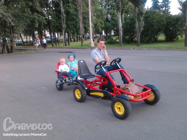 я тоже чуток проехала, но не для меня сие устройство. А дальше мы гуляли по ВДНХ, играли в тире, ели пончики и когда мелкий проснулся (а он спал все это время), взяли на прокат велик "для всех" и еще разок дали круголя. ох и тяжело было крутить педали)) зато дети были в восторге!