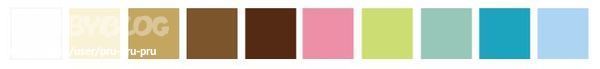Гамма - шоколадно-розо-голубо-зеленая, ну и мои любимые горошки