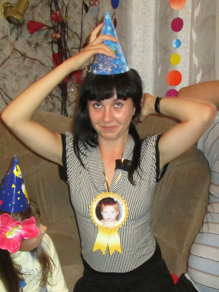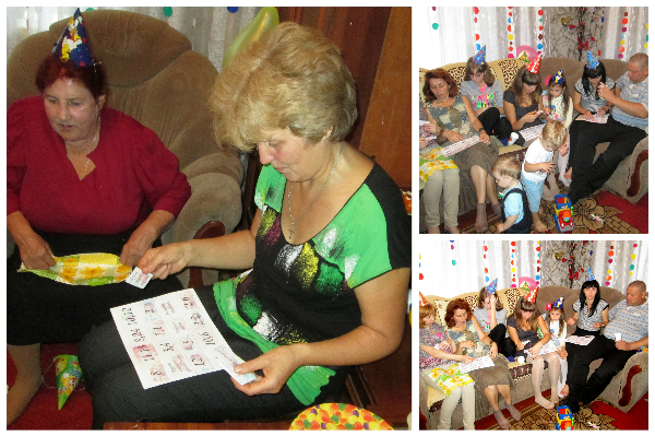 Затем было лото на знание именинника. Вопросы были не легкие. Лучше всех с заданием справилась крестная и получила медаль.