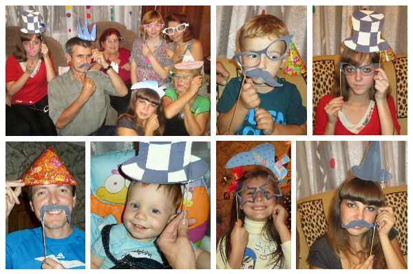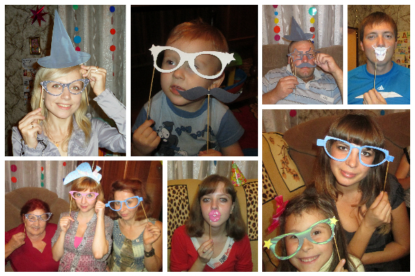 В конце устроили вот такую шуточную фотосессию. Все гости, как дети, выхватывали друг у друг очки, шляпы, усы и позировали перед фотоаппаратами.