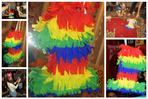 Ну и на закуску осталась пиньята. Долго не могли придумать, чем разбить ее. Били бутылками, руками, в итоге схватили за разные стороны и просто разорвали. На пол посыпались конфетти, мелкие сувениры для детворы и лотерейки для остальных гостей.