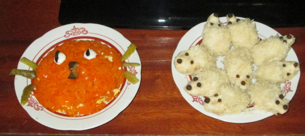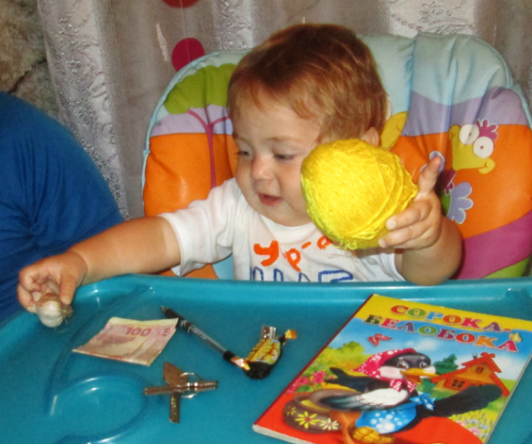 Гадание на будущее. Порадовал мой мальчик тем, что вытащил чеснок (здоровье) и клубок (долгую жизнь). Пусть это и шутка, но все равно радостно как-то. А братик Пашкин в свое время оказался более меркантилен вытащив ключи от машины и кольцо)))