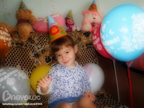 День рождения ДетскийДень рождение нашей принцессы было 30 сентября-воскресение. В этот день и решили отмечать. Времени готовиться заранее не было совсем. Единственное, что я успела сделать это распечатать фотографии. Заказать торт. Вечером надули много шариков .Гости были приглашены к 4. Приехали бабушки и дедушки, друзья семьи, подружка и как Соня называют нашу соседку Няня( девочке 10лет). Посидели очень здорово! Весело и по домашнему. Папа у нас сделал фильм о дочке (подошел с юмором к этому заданию). Ниже можно будет посмотреть)))