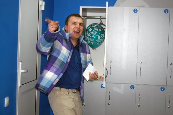 Помимо шаров я сделала несколько плакатов, в которых указывалось, что все, кто увидит сегодня мужа должны в меру своих желаний и возможностей его поздравить, их развесили по клубу. И еще (только это секрет) отправила сообщения через контакт нашим постояным клиентам с просьбой поздравить Антона. Последние не подвели - муж мне весь вечер рассказывал, что он в шоке от такого количества поздравлений и главное, от поздравляющих его лично клиентов студии :) Тут надо рассказать, что студия новая и небольшая, а он сам часто сидит за администратора и поэтому знает всех лично (как и они его).