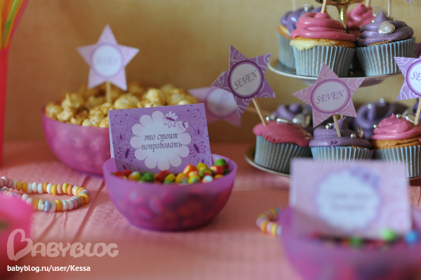 В оформлении стола мне помогла замечательная девушка Катерина http://www.babyblog.ru/user/lenta/svetliiprizrak. Сделала всё быстро, качественно и аккуратно, а главное красиво. Поняла меня с полуслова. За что ей большое спасибо. Заказала у неё растяжку, наклейки, шпажки и вот такие штучки, НО я в печали! Мы забыли с ними сфотографироваться