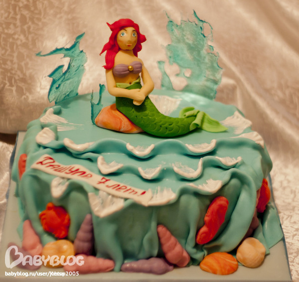 В торт я ещё поставила свечи-фонтаны. В темноте было оч.зрелищно. Очень корю себя, что забыли про фот в тот момент. Русалочка любимый персонаж Дарьи.