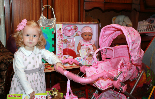 Дочка с ним таскается везде и говорит: "Это мои подайки!" Кстати! им она играет куда больше, чем например, каляской или куклой (дорогущими)...