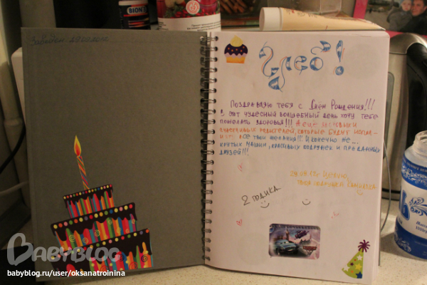 Будет три годика, наклею еще буковок и цифорок на обложку:))