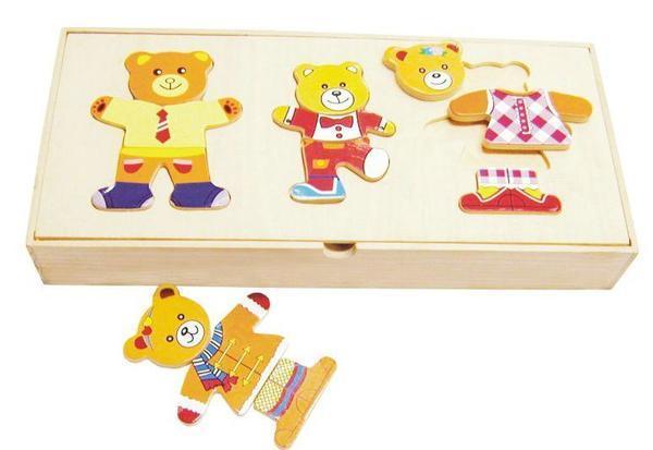мы в сад на первую елку дарили такой набор деревянный там внутри много деталей можно одежду менять можно морду мишки менять и ноги у меня дочь до сих пор в него играет очень увлекательный!