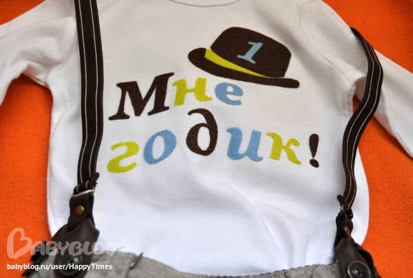 День рождения ДетскийВ поисках наряда на годовасие своего сынишки облазила весь интернет. Предложений было множество, но у каждой мамы свои заморочки, и я не исключение. Мне нужен был стильный наряд для маленького джентельмена, в определенных цветах и именно с надписью "Мне годик!". Потратив несколько ночей на поиски в интернете, я поняла, что день рождения все ближе и ближе, "а воз и ныне там". В итоге, я решила, что надо выходить из интернета и идти по магазинам в поисках материалов для осуществелия своей идеи. А вот и результат: