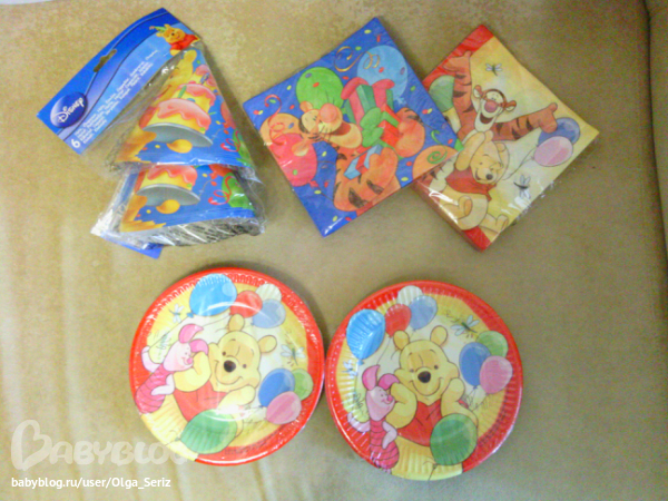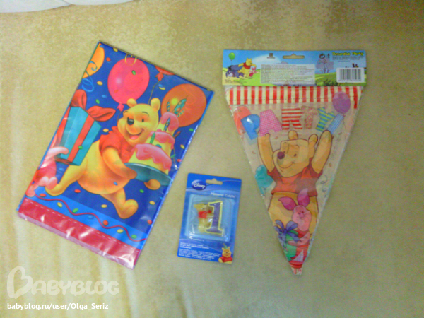 Оформление праздникаЧерез пару недель нам будет годик. День рождение решила оформить в стиле Винни-Пуха. Много декора не будет, решили не вешать кучу всяких плакатов. А вот то что я заказала в интернете, недавно приехало)) очень довольна, ожидала худшего. Еще будет гирлянда с надписью "С днем рождения" и шарики.