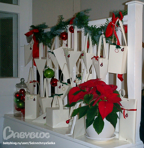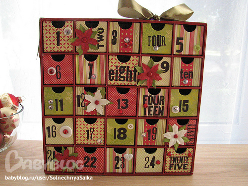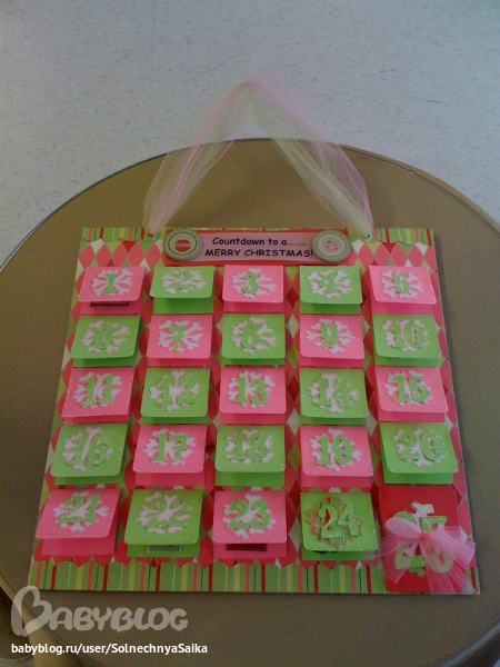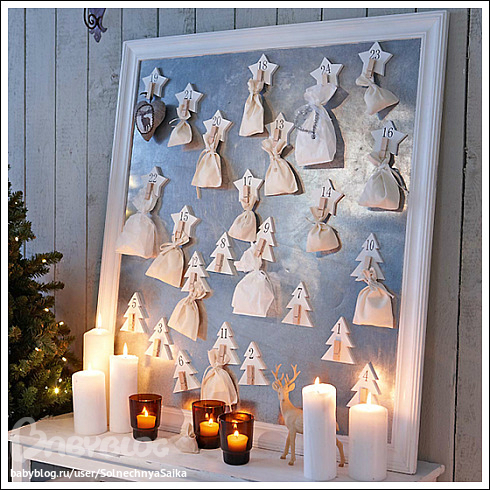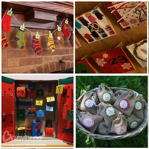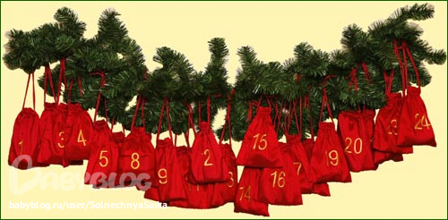 По Адвент-календарю считают дни до праздника. Обычно делают кармашки с 1 по 31 декабря. В каждом кармашки задание на день и маленький подарочек. Но вот в примерах есть календарики через день и реже. Главное сам смысл - ожидание праздника.