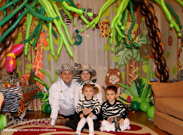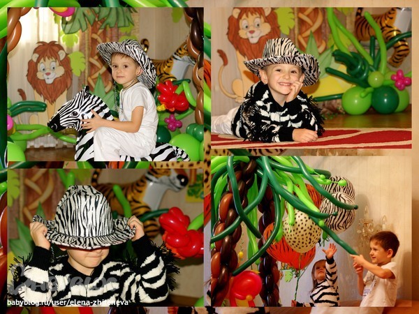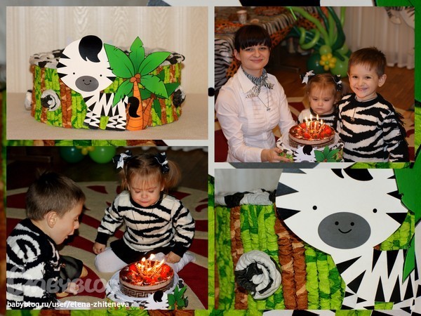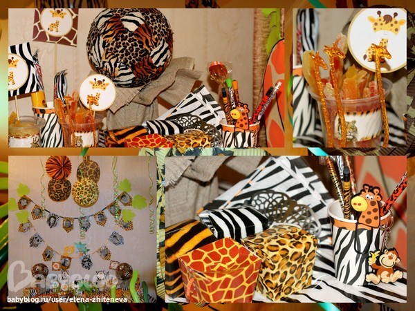 Кстати, зебровые наряды связала нам наша бабушка, за что ей громадное спасибо! А дед делал нам из дерева указатели на сафари-вечеринку. К сожалению, я не успела их должным образом оформить. Но ему тоже большущее спасибо!