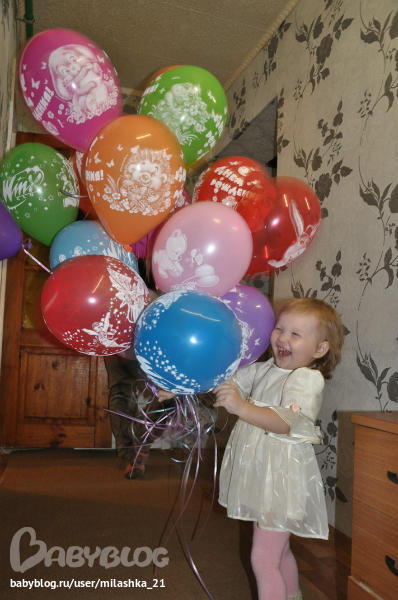 День рождения ДетскийВсю ночь украшала комнату, что то доделывала. Сидела до 2 ночи. Моей сладкой конечно больше приглянулись бабочки.С утра ждал ее другой сюрприз, охапка шариков от папы с дядей (они вместе ездили). По всей квартире бегала с этими шарами и показывала всем. День рождение отмечали только в семейном кругу, не смотря на то что я так усердно к нему готовилась. Осторожно много фото.