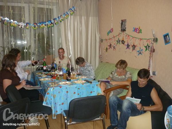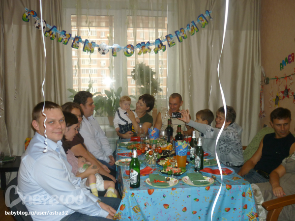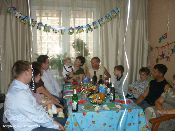 Празднование проходило в субботу, кто не смог приехать, приезжали нас поздравлять еще несколько выходных подряд))) Я хочу сказать, что главному герою очень все понравилось, вел себя хорошо. Причем утром встал и конючил все время до прихода гостей, я даже заволновалась, но как пришли первые гости, сразу повеселел, ему много внимания от всех, он только успевал переключаться)))