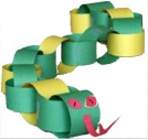 И, наконец, из всем известной новогодней гирлянды-цепочки из полосок бумаги можно сделать змейку.
