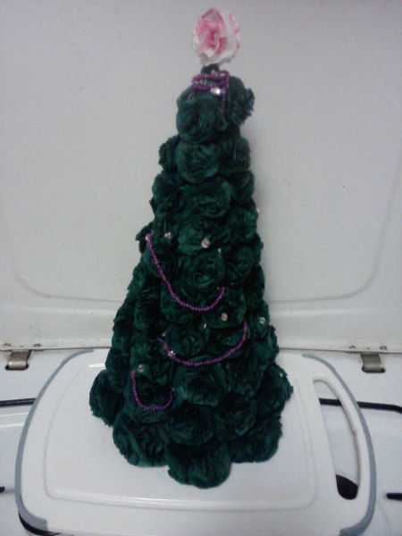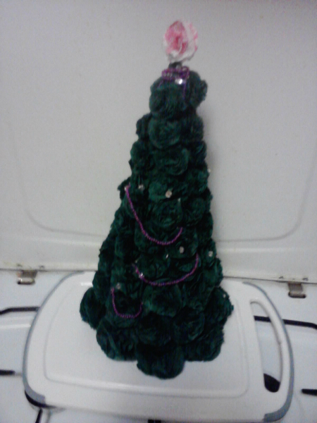 Ёлочка из салфеток скрученных в розочки,бисерная герлянда и паетки.Ну как вам?