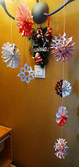 Дети конечно во всем процессе принимали пассивное участие, а я забыла, как вырезать снежинки, последний раз это делала в начальных классах, кажется. Пришлось воспользоваться идеями креативных групп ВКонтакте.))