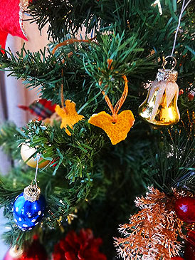Сделали ёлочные украшения из мандариновых корок.
