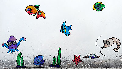 Рисовали витражными красками.