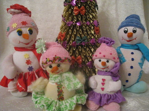 Поддерживаю идею из носков, очень весело может получиться. Только я бы украсила еще какими-нибудь блестяшками.