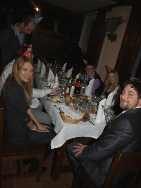 Артем даже не догадывался какой сюрприз его ждал. Завязав ему глаза, я посадила его в такси и мы приехали в "Охоту", где его уже ждали лучшие друзья и накрытый стол!!!! Все, как в американских фильмах))) Очень рада, что все получилось и муж остался доволен!!!!