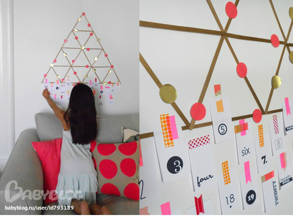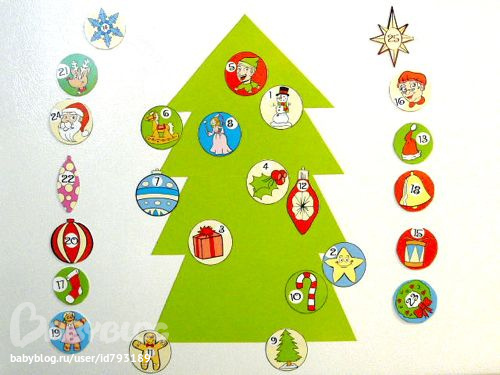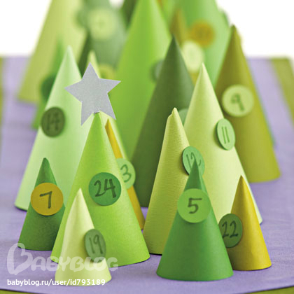 Несложный в исполнении и эффектный с виду календарь-елочка. (есть шаблон циферок от этого календаря - спрашивайте)