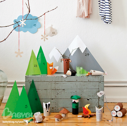 Какая здоровская идея - адвент-лес))) Не просто мешочки или коробочки, а тут вам и сова, и барсук, и олень с лисичкой, и елки да горы=))