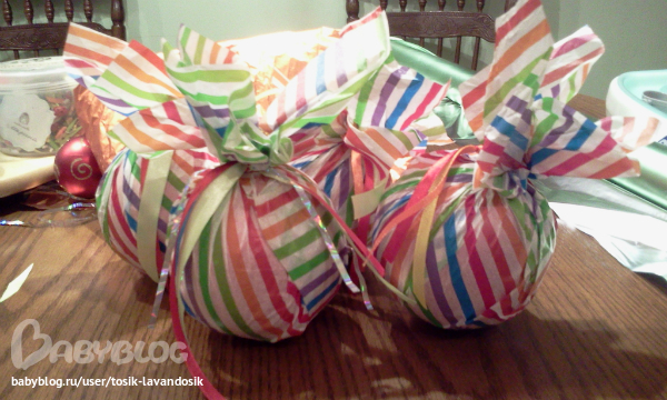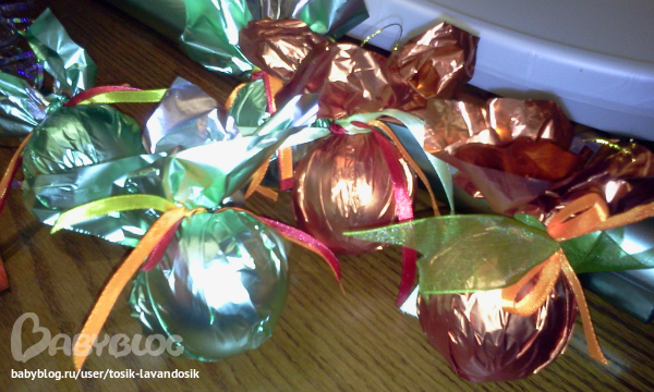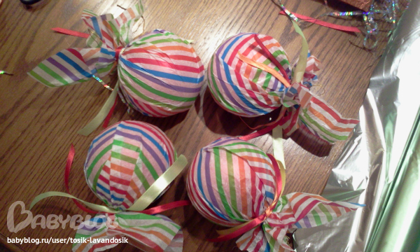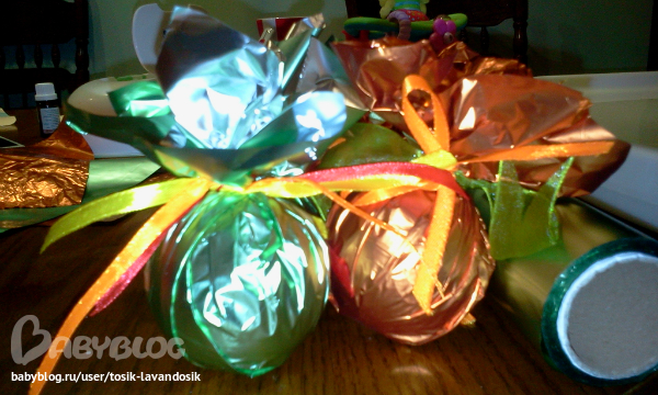Огроменное спасибки за вовремя поданую идейку!! На кону- оформление уличной елки(9 метров!!!),а бюджет "Хромает". Огромные игрушки ого-го потянут.Сегодня купила мячей на пробу , обернула разной фольгой,декорнула-прикольненько смотрится.С недельки еще 40(!!) ждут!!!! Пожелайте мне терпения!!!