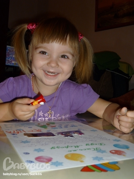 Вот так мы письмо писали,точнее писала мама под диктовку,а сама она уже клеила наклейки подарков и украша снежинками:)))