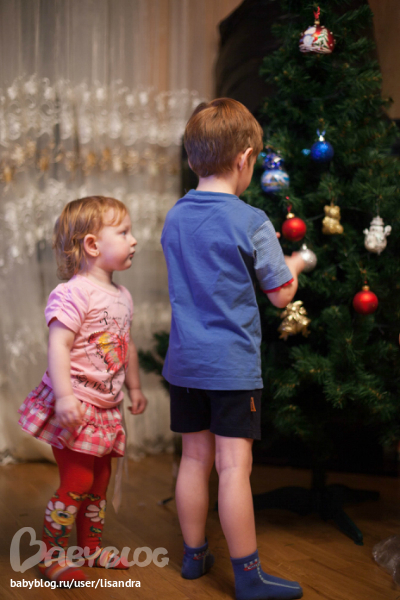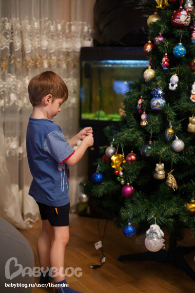 А вторую елочку мы нарядили с детками вчера вечером. Это первый год когда елка стоит на полу, и первый год, когда мой сыночек принимает самое активное участие в ее украшении. Раньше он больше любовался сидел, как мама вверх вниз скачет, потому что стояла она на столике, упираяся верхушкой в потолок. А вчера сам выбирал игрушки и вешал на веточки. Так усердствовал, что 5 игрушек не дожили до праздника =)